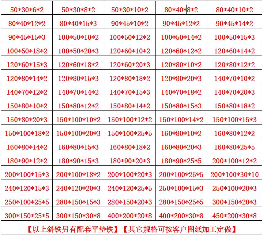 泊頭市晨鑫機(jī)械設(shè)備制造有限公司大量現(xiàn)貨斜鐵,平墊鐵。廠家直銷,全國發(fā)貨。歡迎新老客戶來電咨詢。另誠招各地代理商。